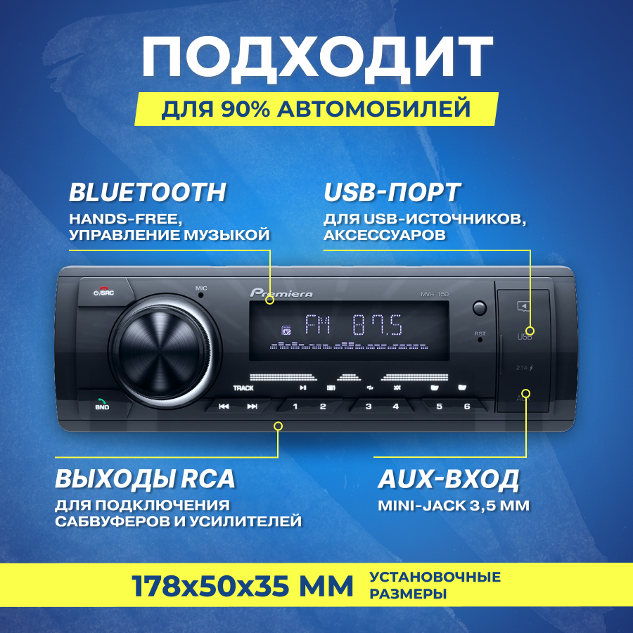 Ресивер-USB Premiera MVH-150 (ВТ/3Way) информация: