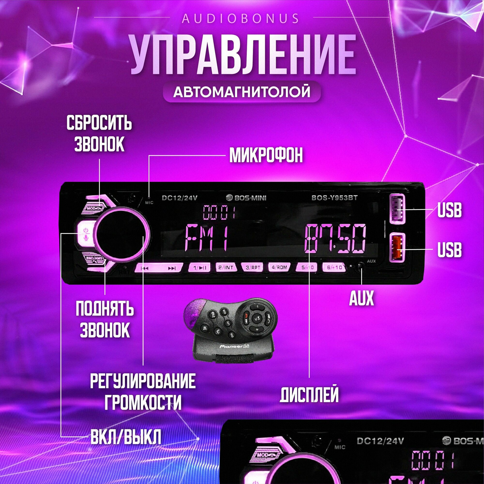 Автомобильная магнитола 1 DIN, 12-24V, Bluetooth, MP3 информация: