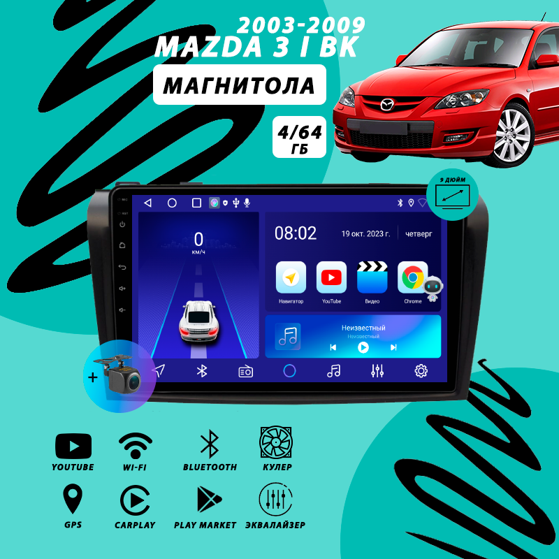 10 цен на Магнитола Mazda 3 BK (2003-2009) 4Гб+64Гб/CANBUS/Android/Carplay/кулер/Wi-Fi/Bluetooth/2din/штатная магнитола