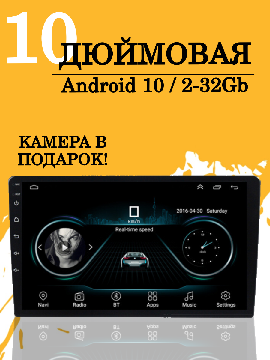 Автомагнитола 10 дюймов, 2 + 32 ГБ, 2 Din, Андроид 10, CarPlay/Android Auto, GPS приемник, Bluetooth, Wi-Fi, FM-радио информация: