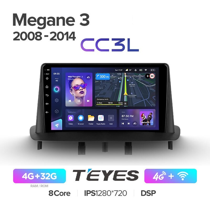 Отзывы на Магнитола Renault Megane 3 2008 - 2014 Teyes CC3L 4/32Гб ANDROID 8-ми ядерный процессор, IPS экран, DSP, 4G модем, голосовое управление