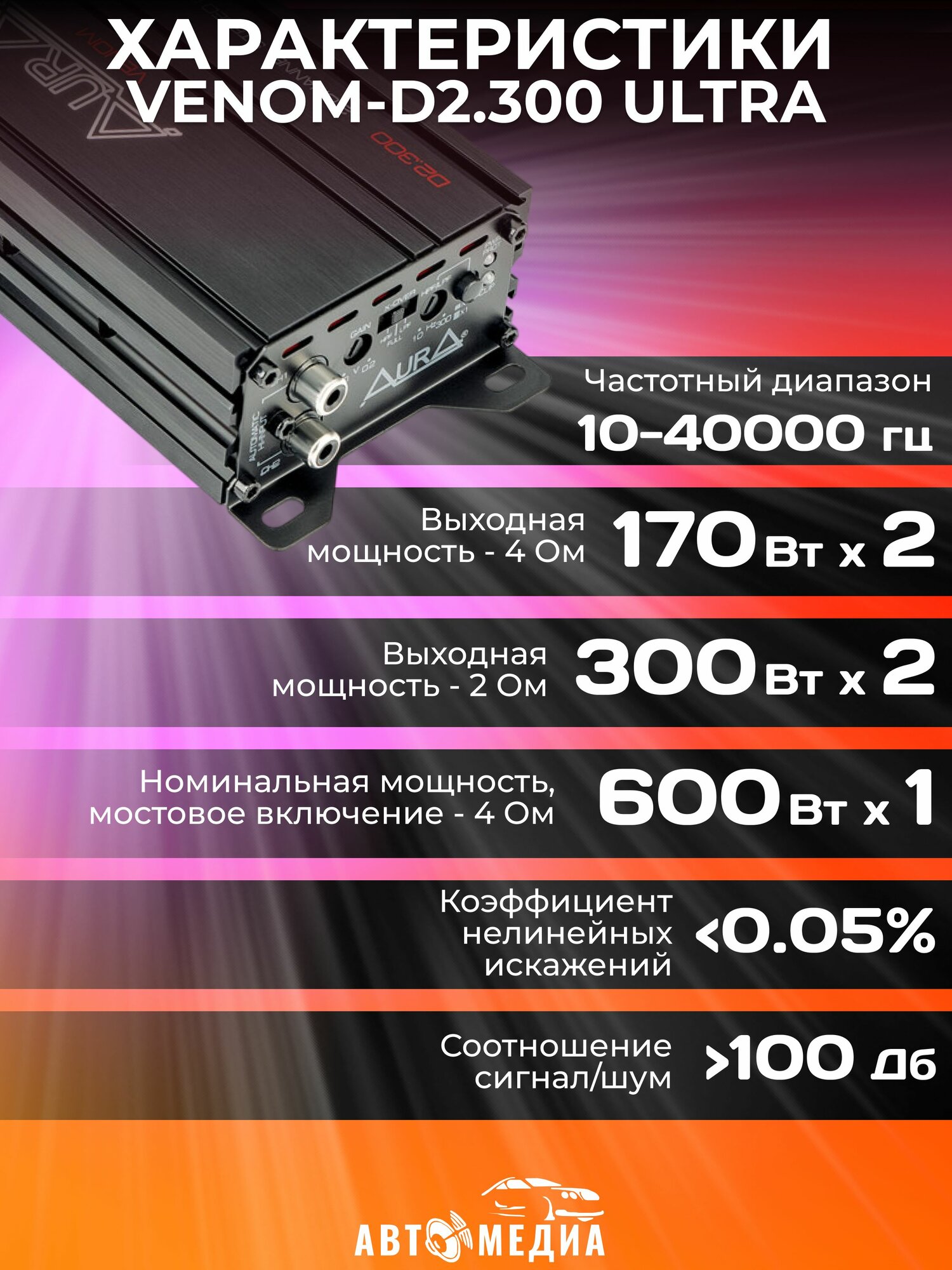 Усилитель автомобильный Aura VENOM-D2.300 ULTRA информация: