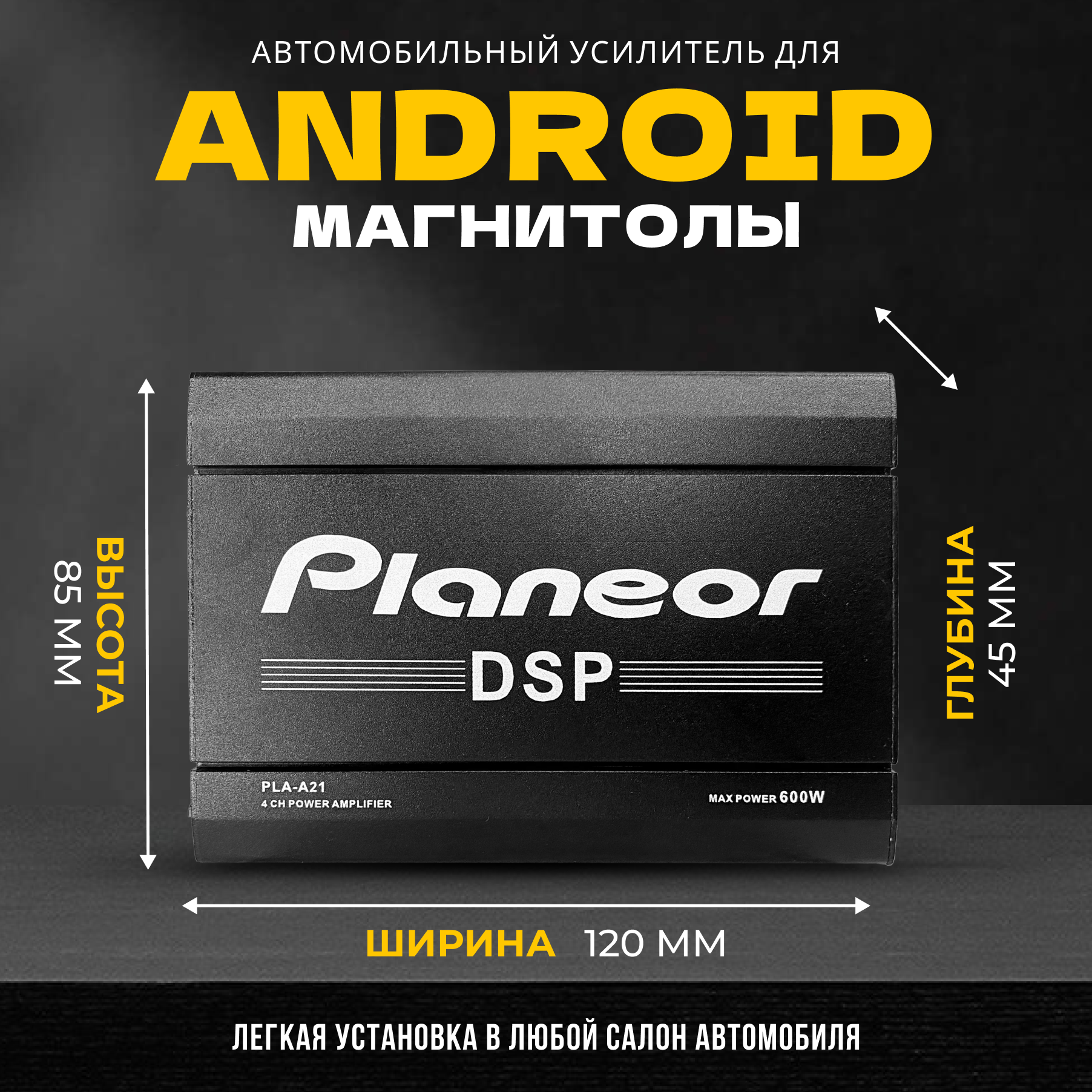 Усилитель автомобильный для Android-магнитолы с DSP-процессором, четырехканальный, 600 Вт