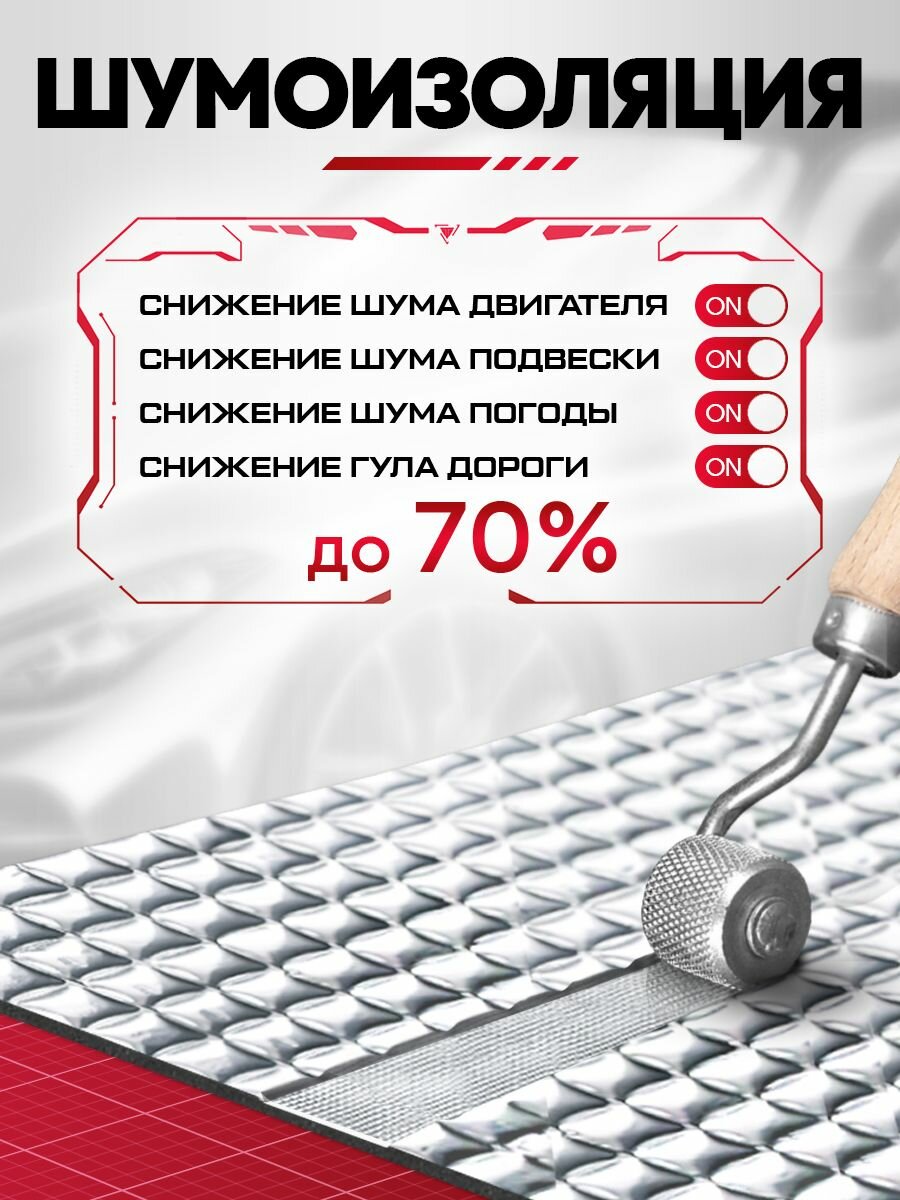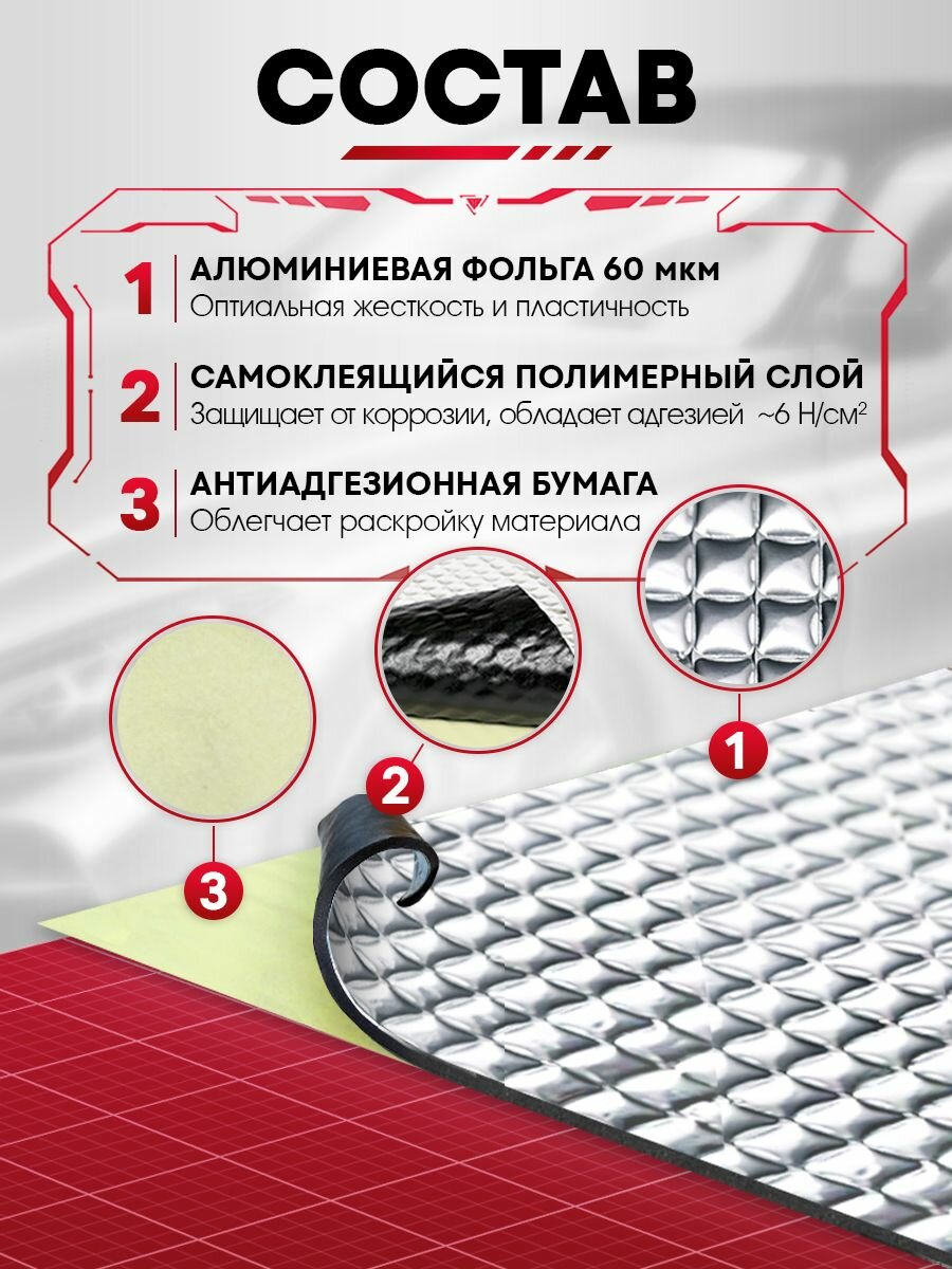 | Дополнительная информация | Универсальная самоклеящаяся шумоизоляция и виброизоляция для автомобмля, стальных ванн, моек, поддонов, отливов |