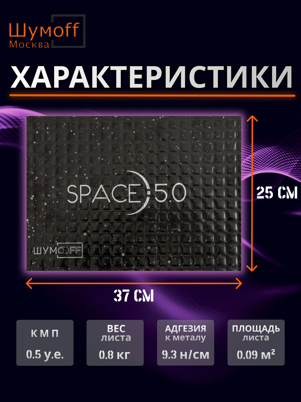 Шумоизоляция автомобиля, Виброизоляция, Вибропоглощающий материал Шумофф Space 5.0 - комплект 4 листа 25x37см информация: