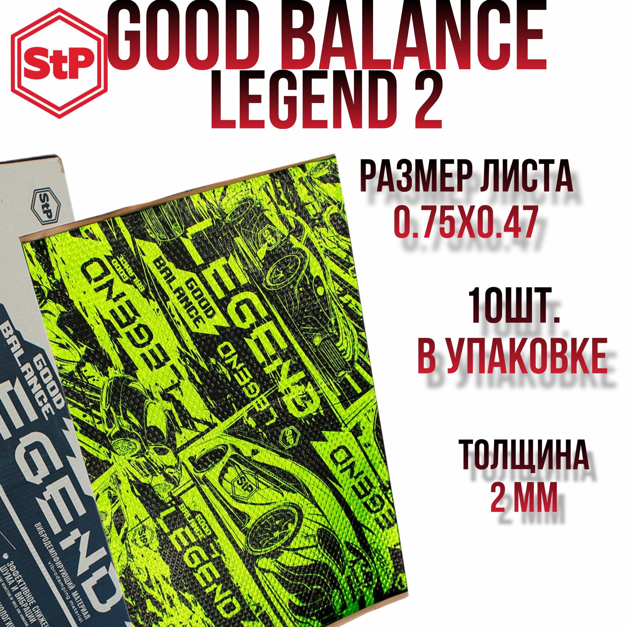 Виброизоляция StP Legend GB 2 / Вибродемпфер СТП ГБ 2 (10 листов, размер листа 47см. х 75см.) информация:
