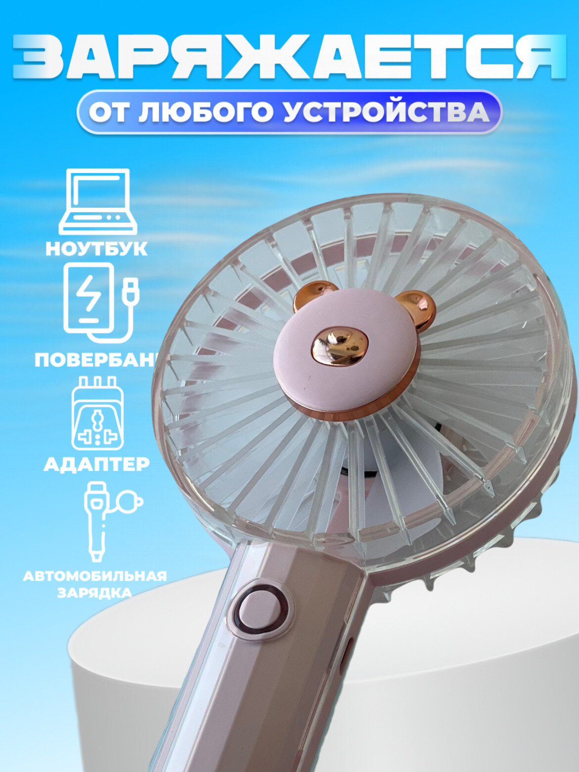 10 цен на Вентилятор ручной с подставкой Мишка, розовый