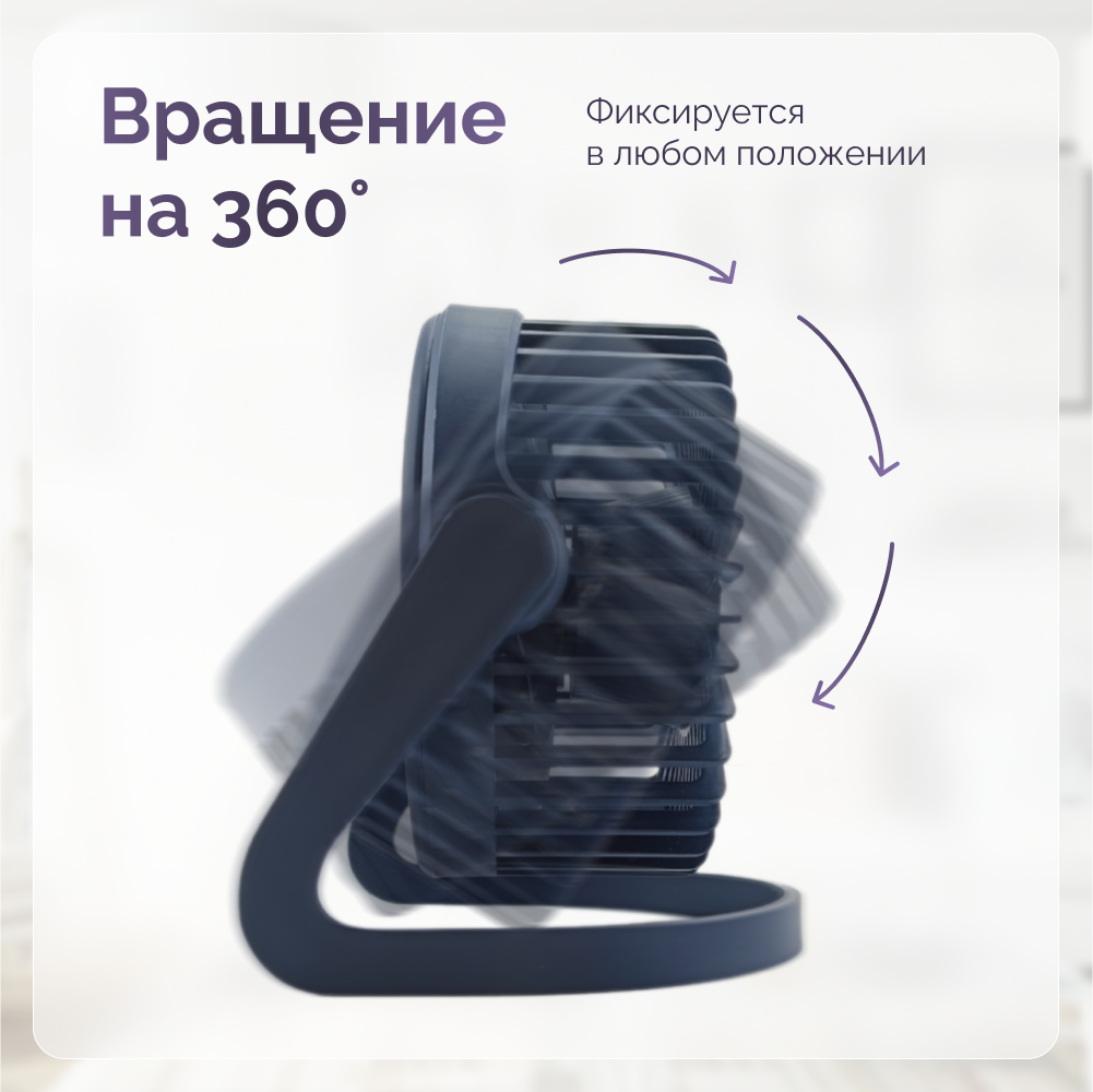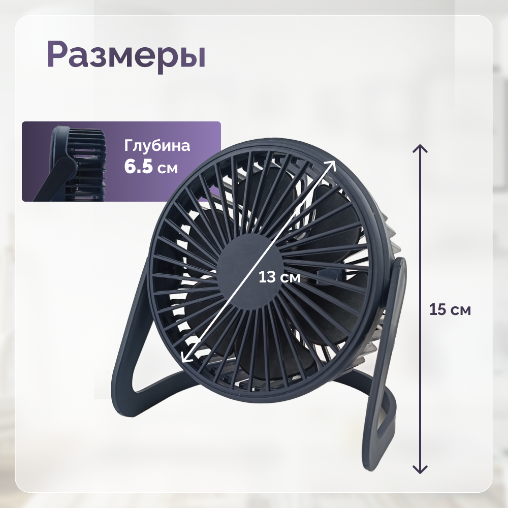 Вентилятор настольный 5 дюймов USB темно-синий информация: