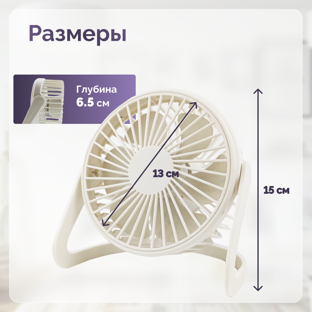 Вентилятор настольный 5 дюймов USB белый информация: