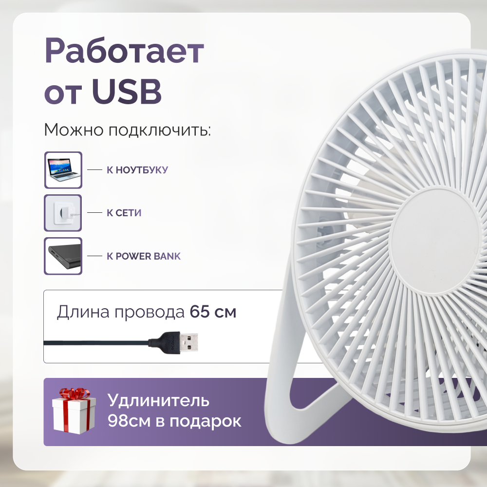 Вентилятор настольный 6 дюймов USB белый 1 399 ₽