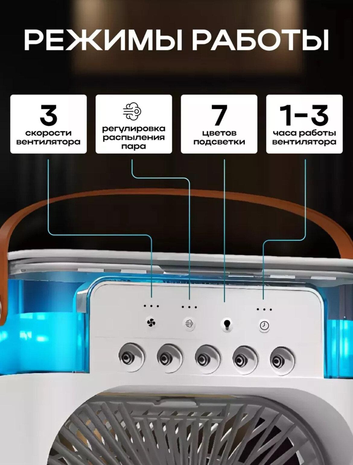 Отзывы на Вентилятор настольный с увлажнением воздуха с подсветкой и таймером сна / вентилятор комнатный, для офиса. Мини кондиционер, охладитель воздуха, Белый