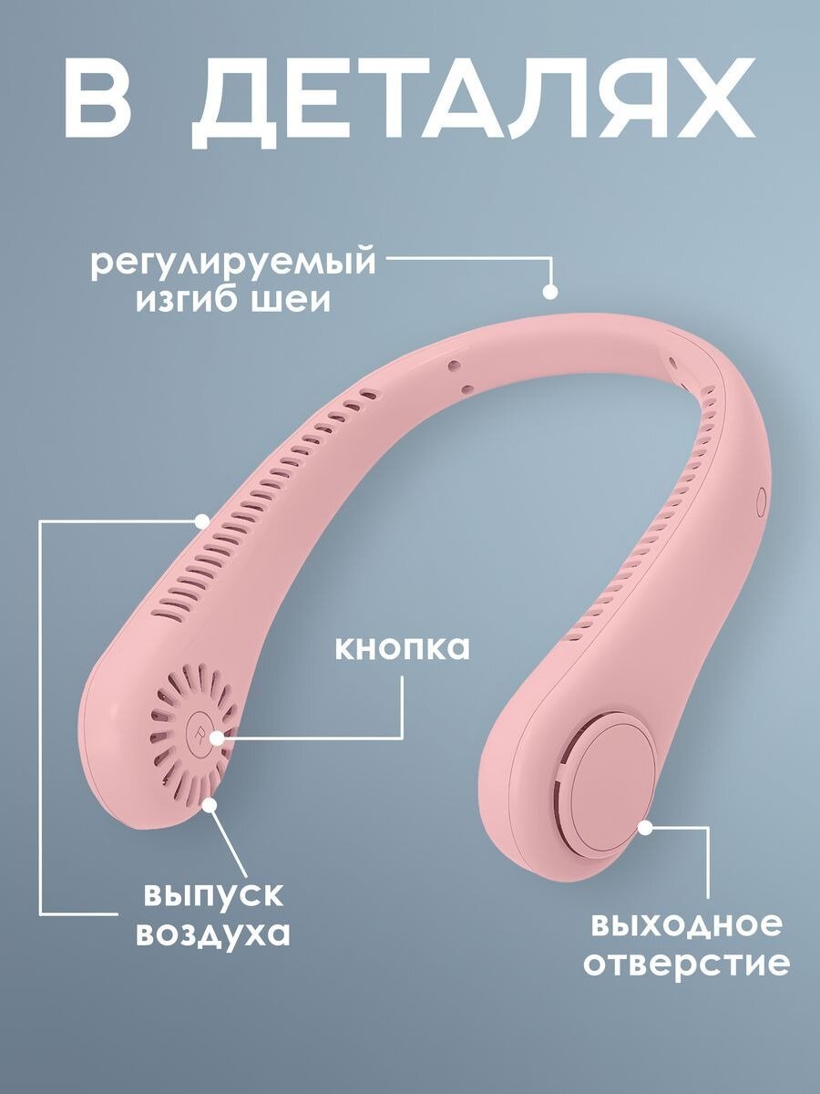 Портативный вентилятор на шею, Подвесной вентилятор, Портативный мини-вентилятор для спорта, безлопастной подвесной шейный вентилятор с USB-зарядкой, розовый 950 ₽