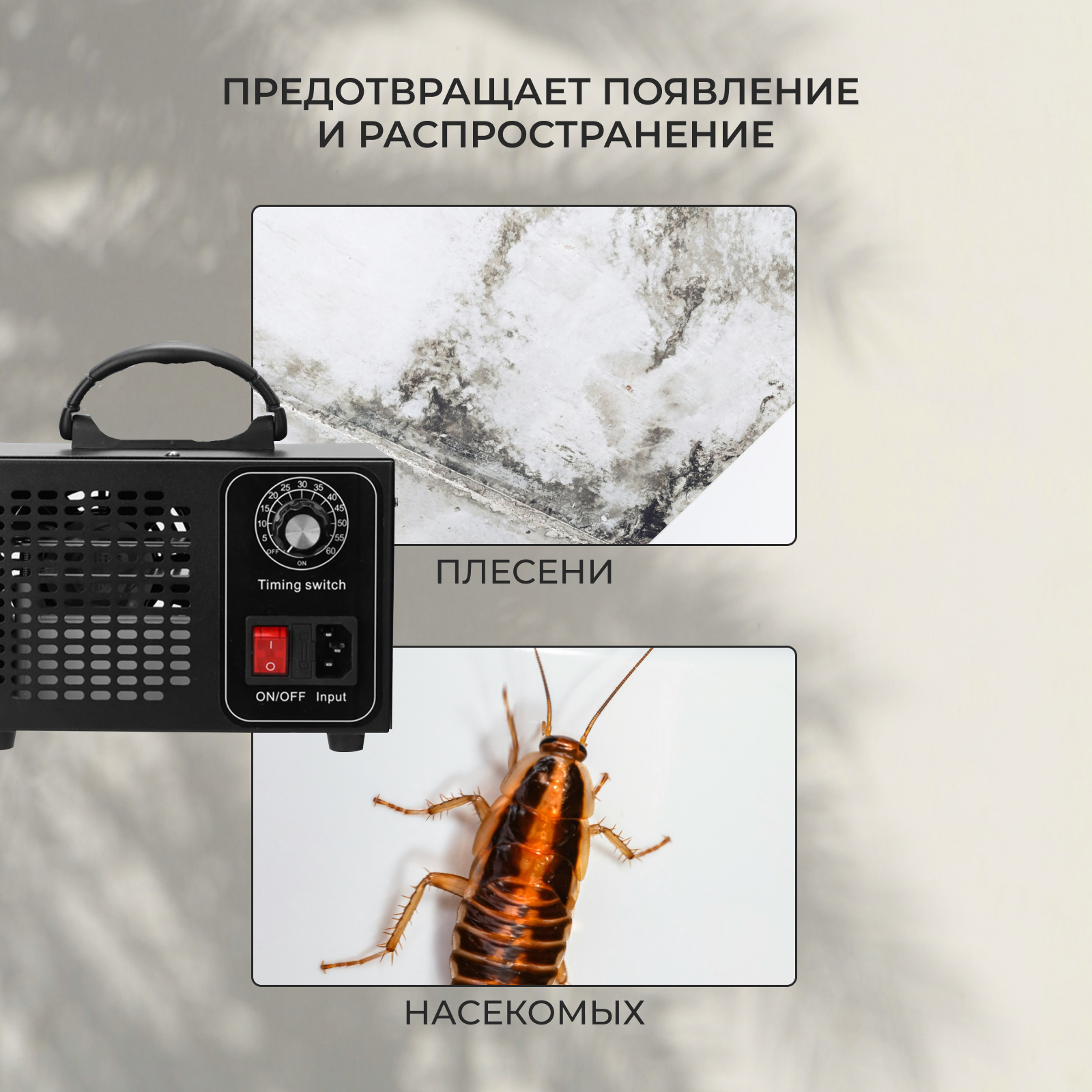 Озонатор 500 мг/час, 220AC/12DC с таймером. Очиститель и очиститель воздуха, воды, продуктов и холодильника, охват до 50 м2. Озонатор для дома.