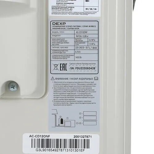 Кондиционер настенный сплит-система DEXP AC-CD12ONF информация: