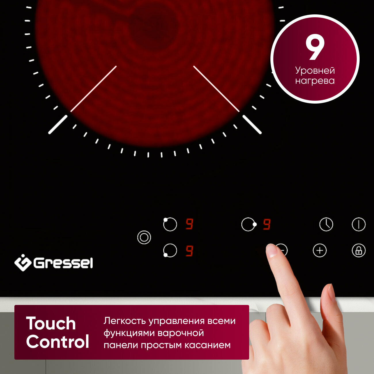 Встраиваемая электрическая варочная панель Gressel U60D14S100, 60 см, 6000Вт, Slider control 11 251 ₽
