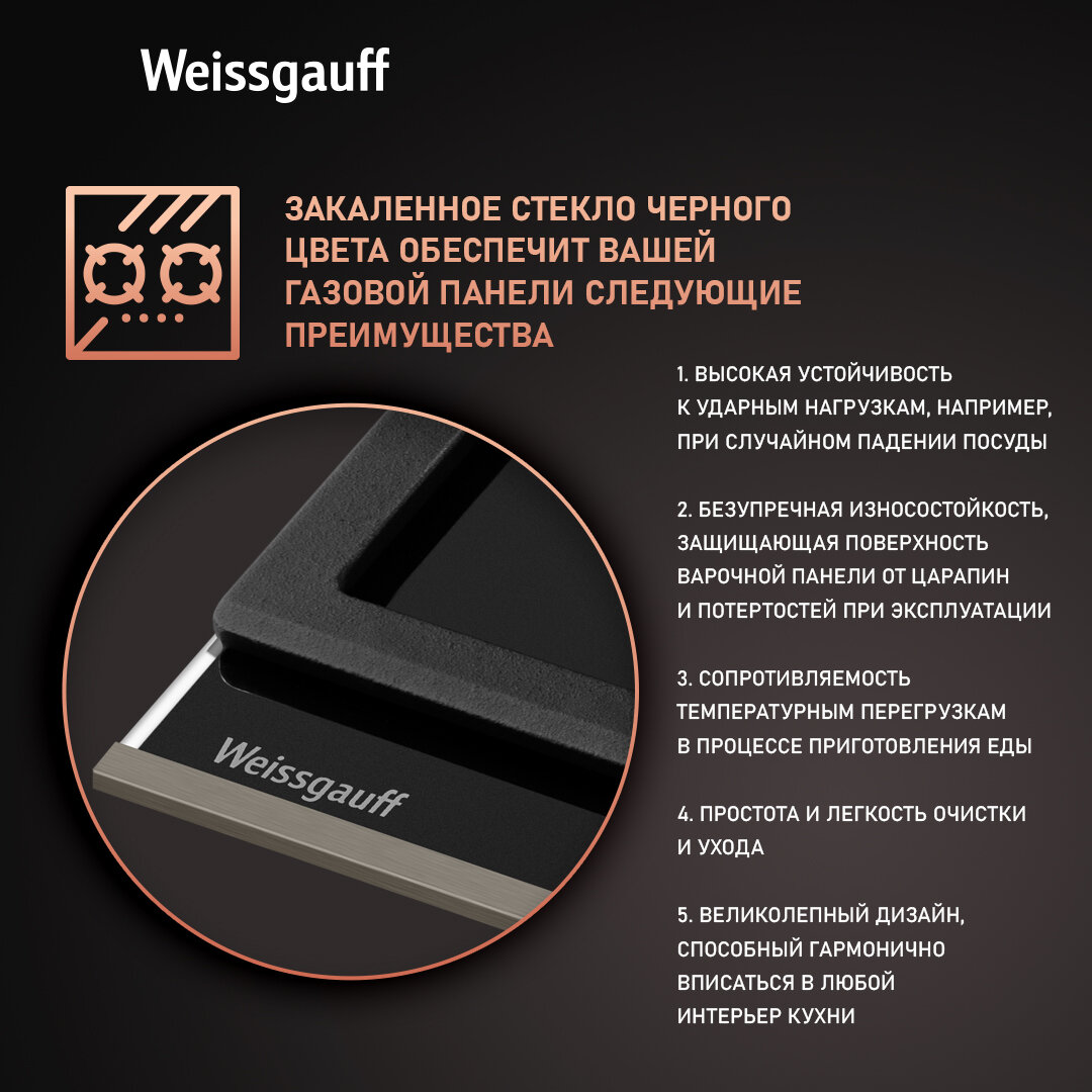 10 цен на Варочная панель Weissgauff HGG 645 BGXBV WOK-конфорка, 3 года гарантии, автоматический электроподжиг, Рукоятки Hi-Tech, газ-контроль