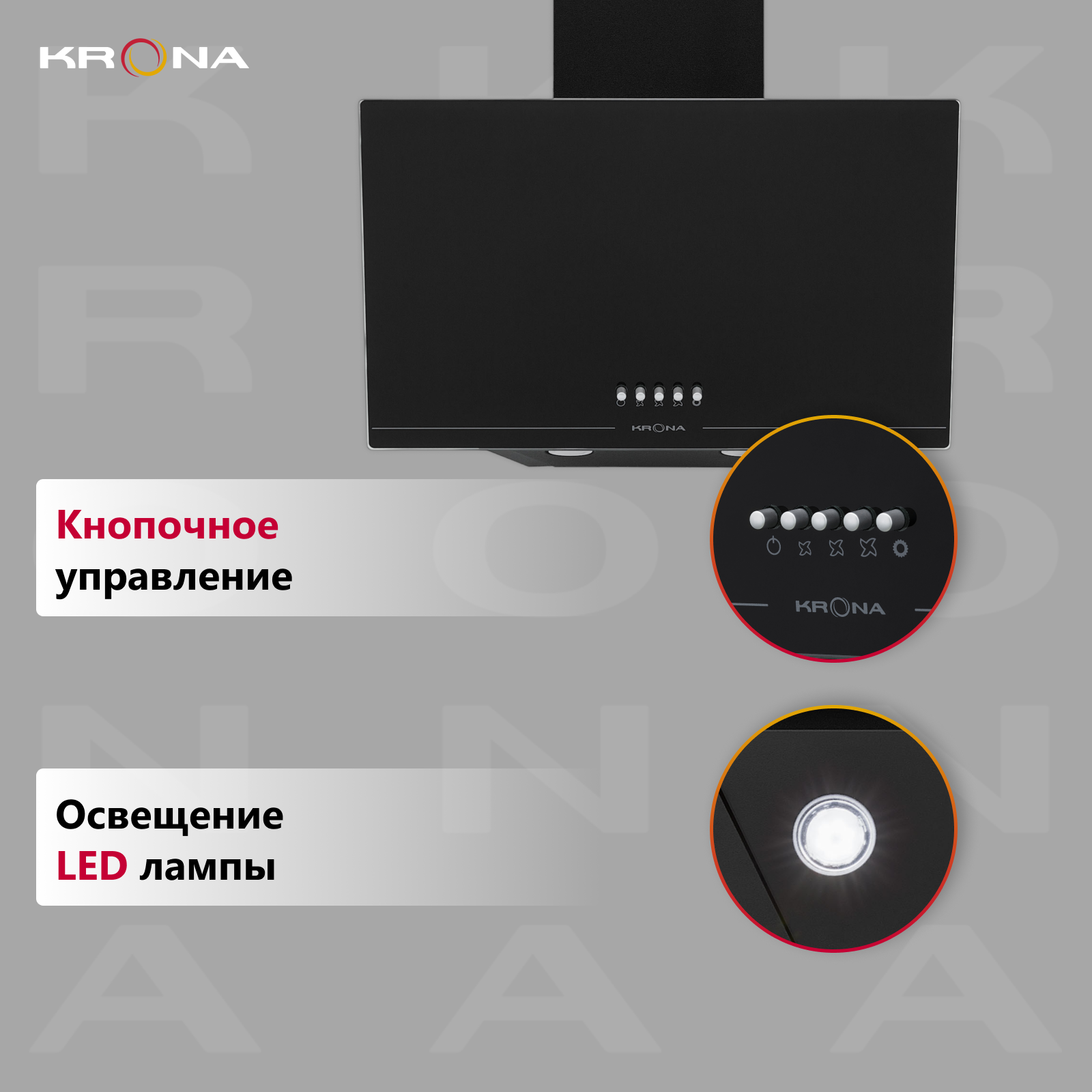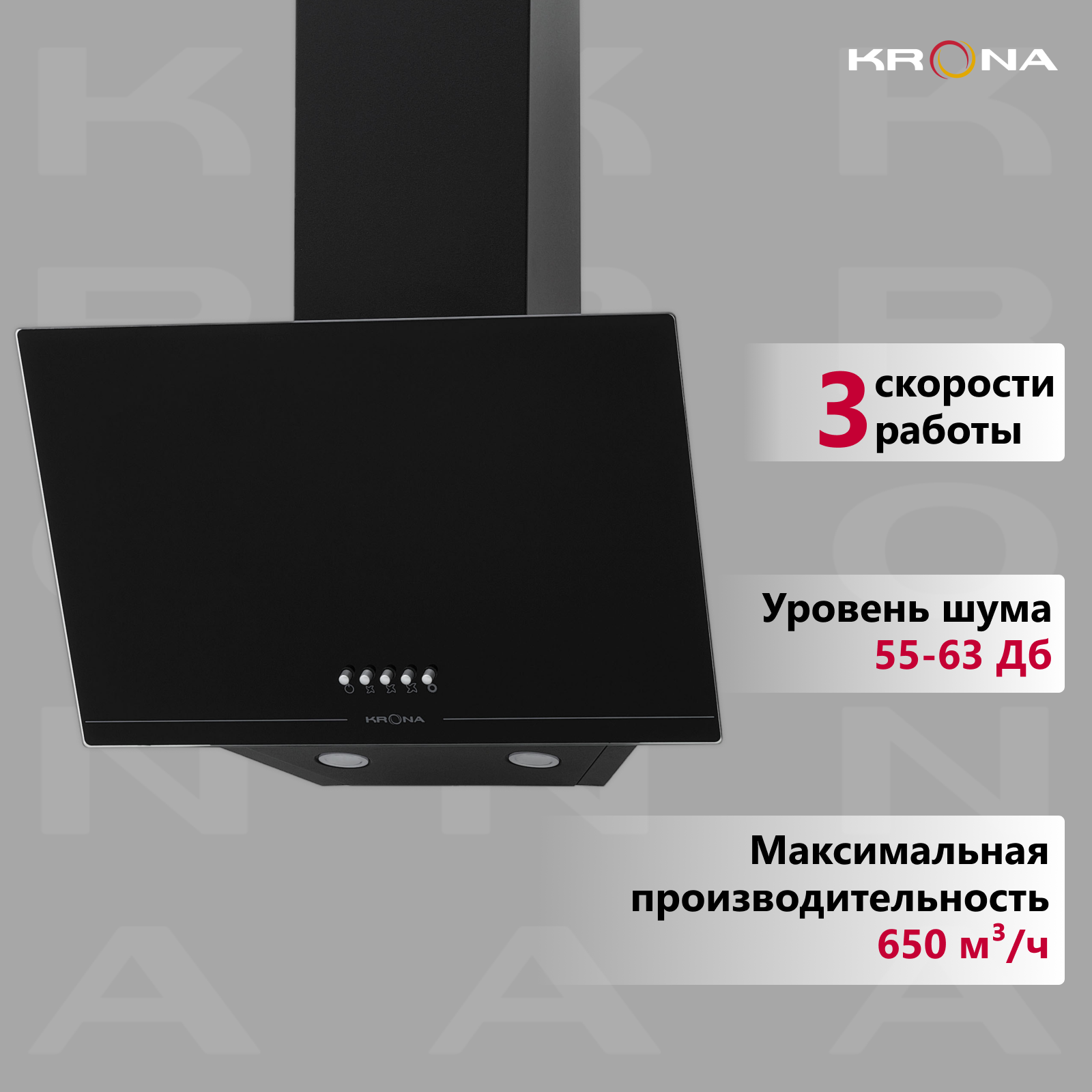 Встраиваемая вытяжка Krona KATE 600 Black PB, 3 скорости, антивозвратный клапан, 640 м3/час, чёрная