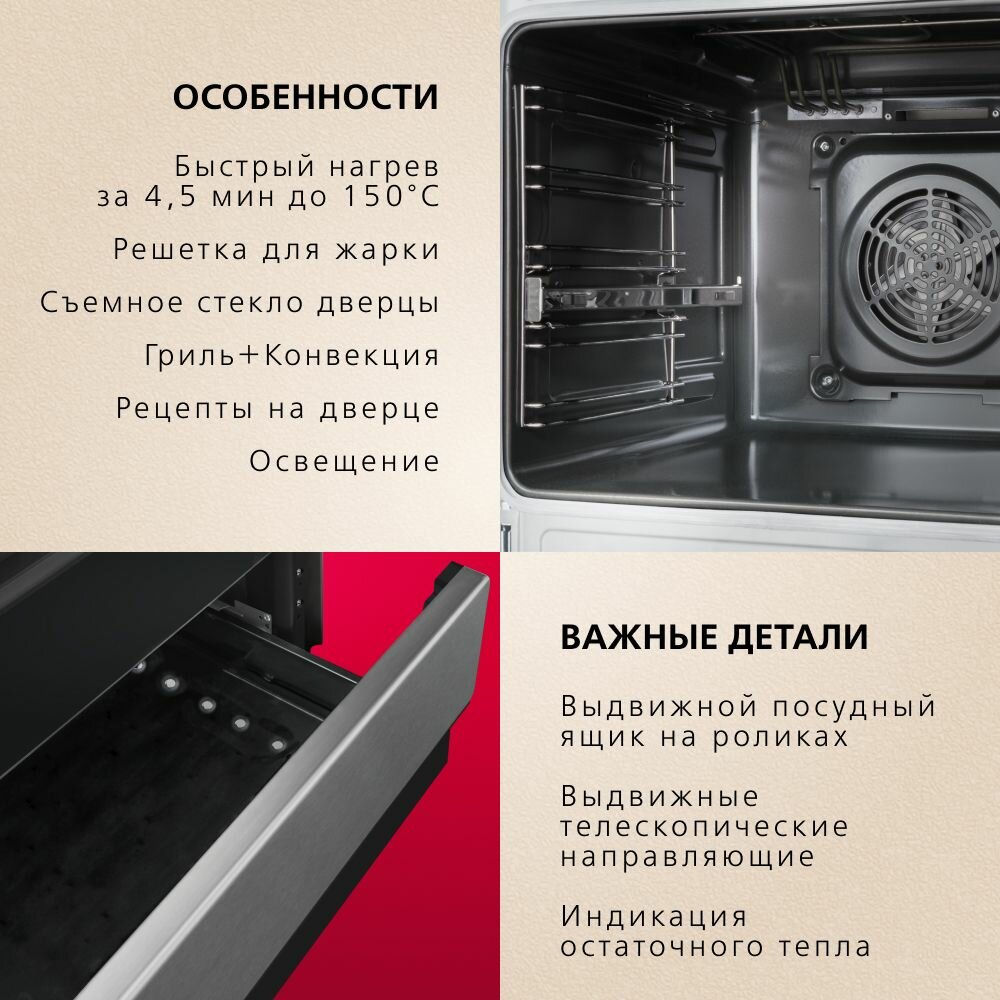Электрическая плита Hansa FCCS63000H, серебристый, 8200 Вт, 68 л, гриль, рецепты на дверце