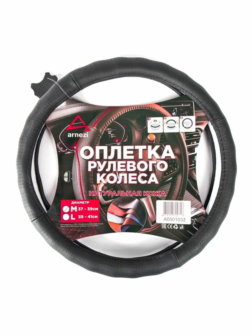 10 цен на Оплетка на руль 37-39см натуральная кожа размер М (38см)