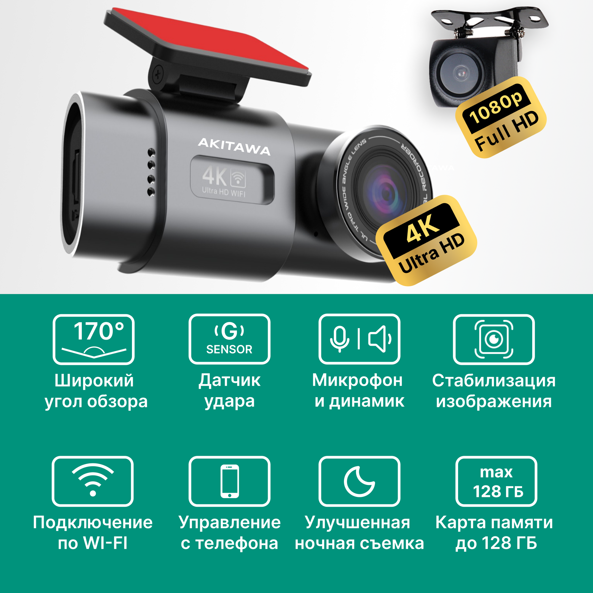Видеорегистратор автомобильный с камерой заднего вида Wi-Fi 4K AKITAWA информация: