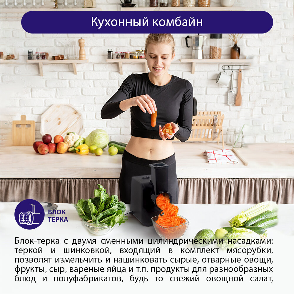 | Насадки | диск для фарша / насадка для кеббе / насадка для приготовления колбас / насадка для шинковки / насадка-терка |