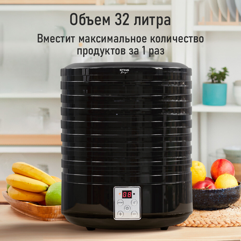 10 цен на STINGRAY ST-FD726B 10 поддонов: 8+1 для ягод+1 для пастилы черный сушилка д/фруктов,овощей
