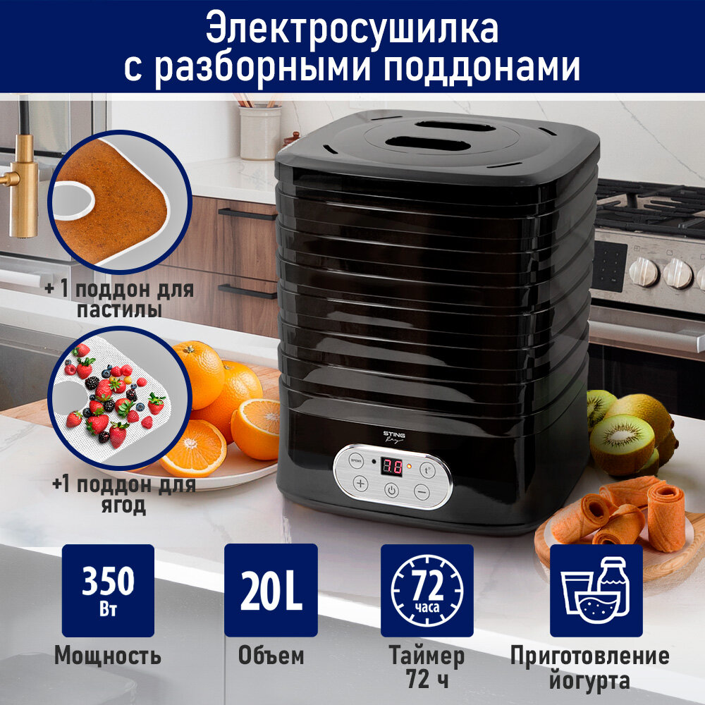 10 цен на STINGRAY ST-FD717B 9 поддонов: 7+1 для ягод+1 для пастилы черный сушилка д/фруктов,овощей