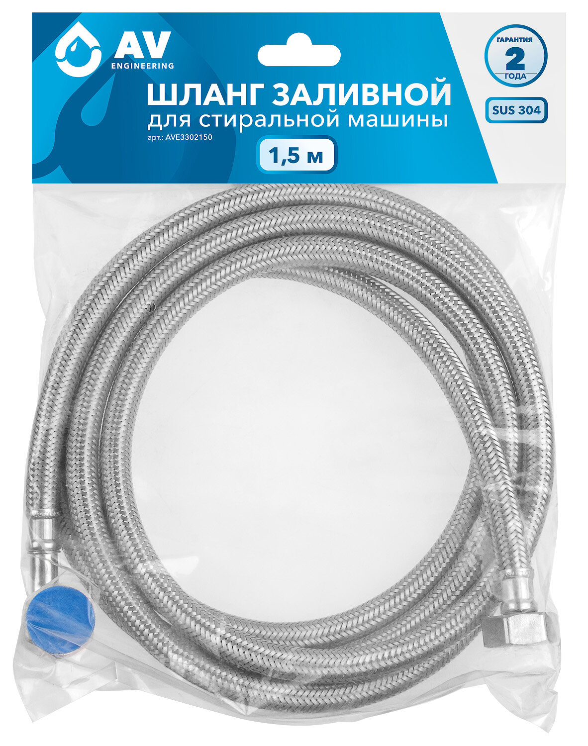 Шланг заливной для стиральной машины AV Engineering SUS 1,5 м (AVE3302150) информация: