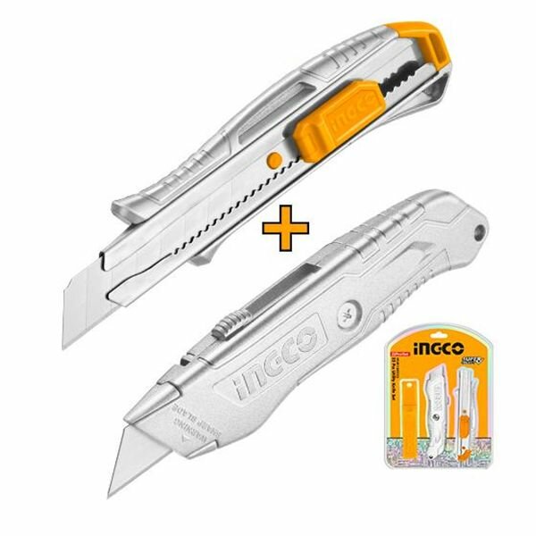 Отзывы на Набор из 2 металлических ножей 18мм +19мм INGCO HUK180225 + по набору лезвий для каждого ножа