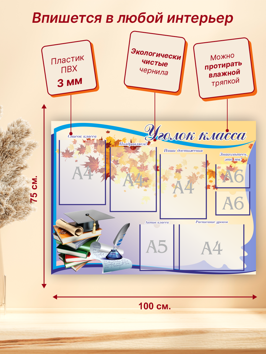 Информационный стенд "Классный уголок", 750х650 мм, 5 плоских карманов А4
