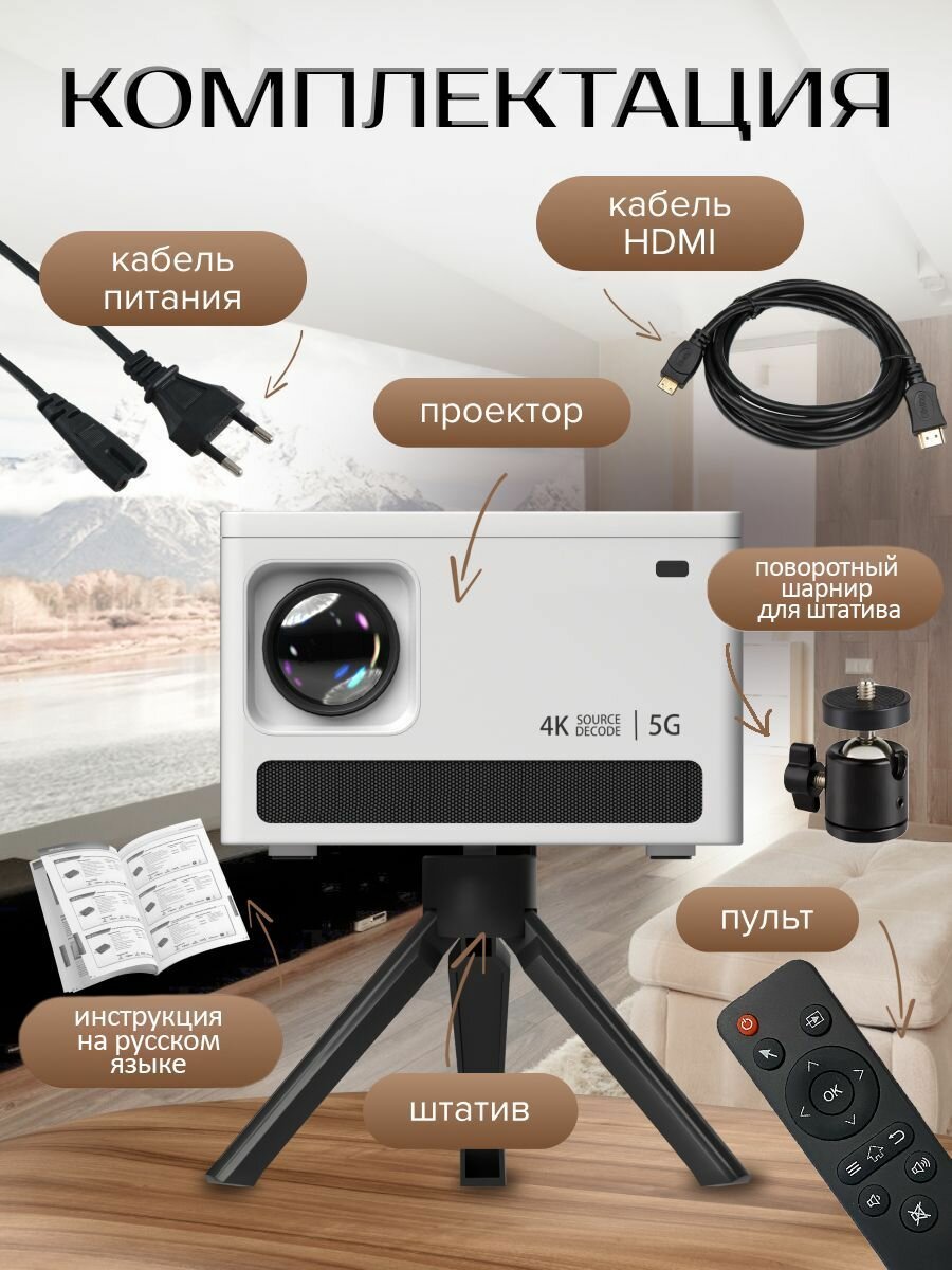 Мини проектор 4К с высоким разрешением 1920х1080 для фильмов и мультфильмов