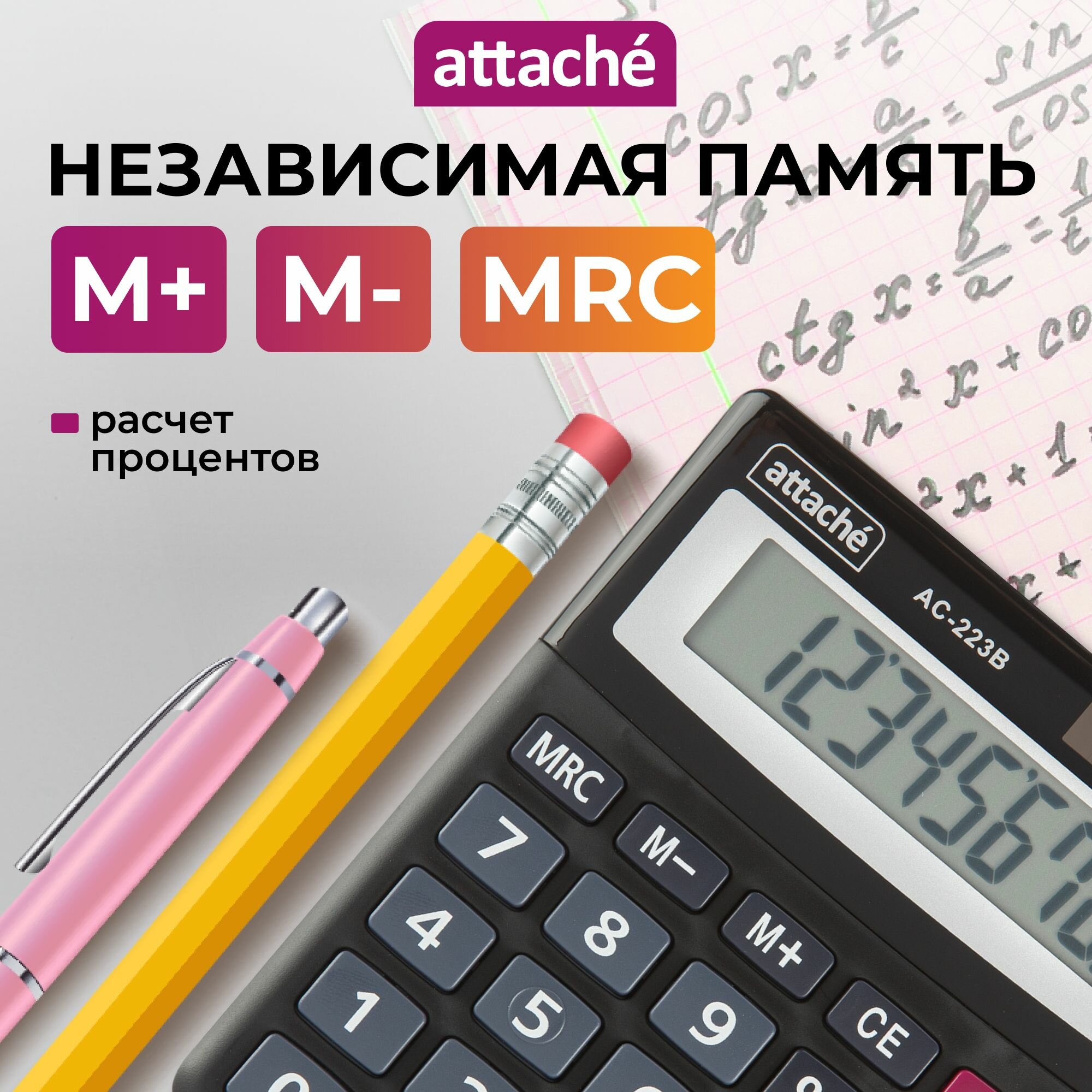 Калькулятор Attache Настольный, AС-223B, 8 разрядов, двойное питание, черный информация:
