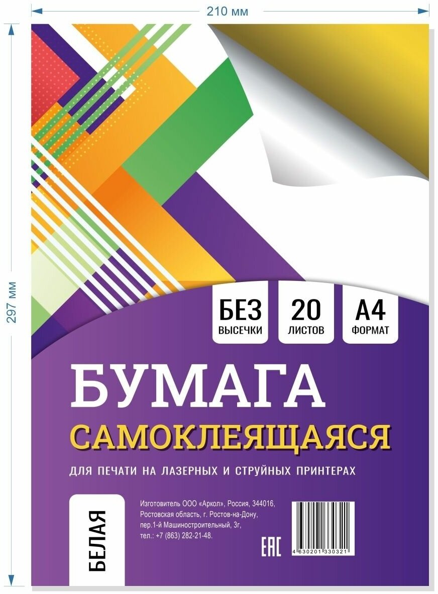 Calligrata Бумага А4, 100 листов, 80 г/м, самоклеящаяся, белая (глянцевая/матовая), микс