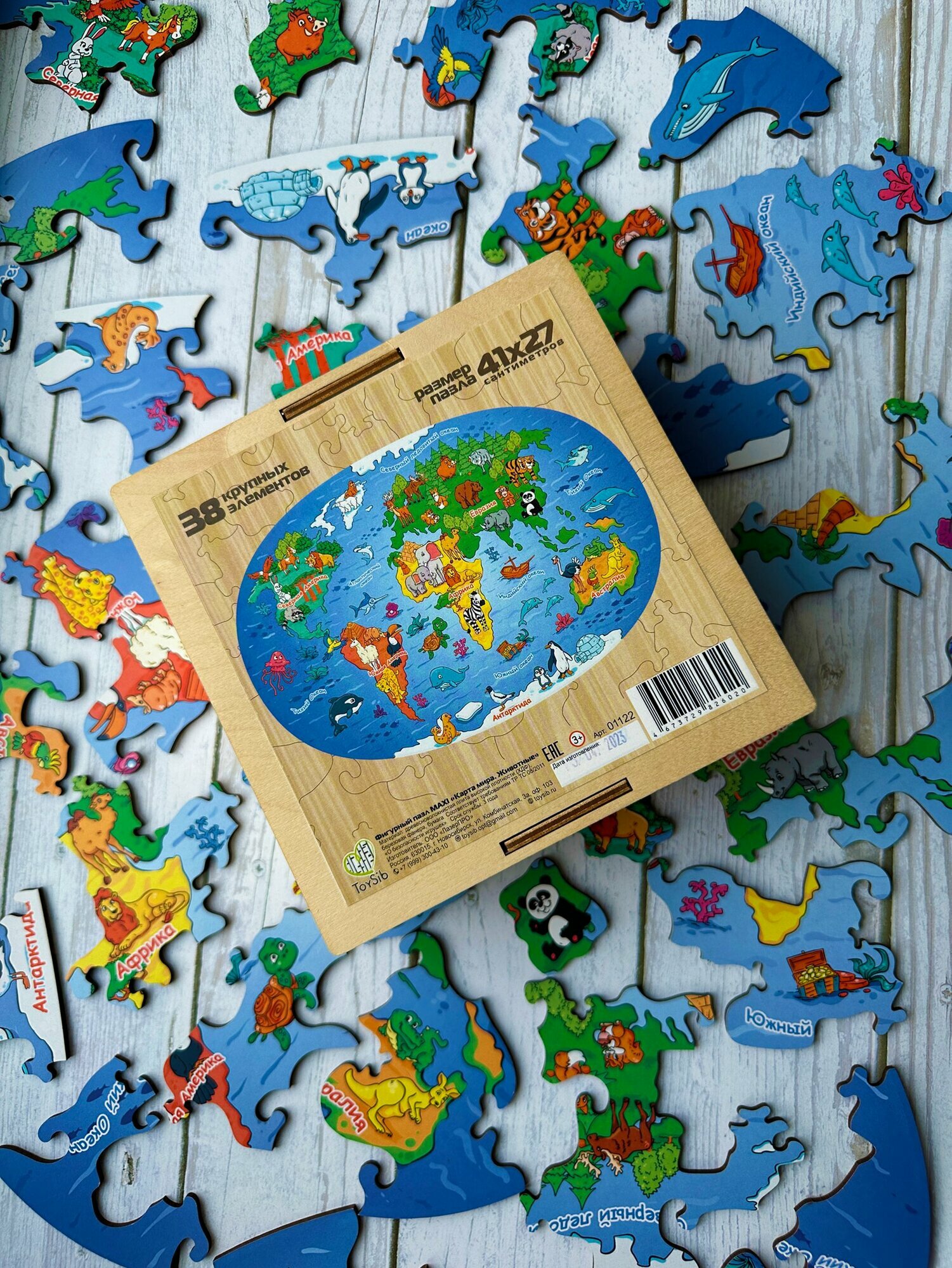 Пазл для детей деревянный, Карта Мира с животными, Монтессори, Игры для детей от 3 лет развивающие информация: