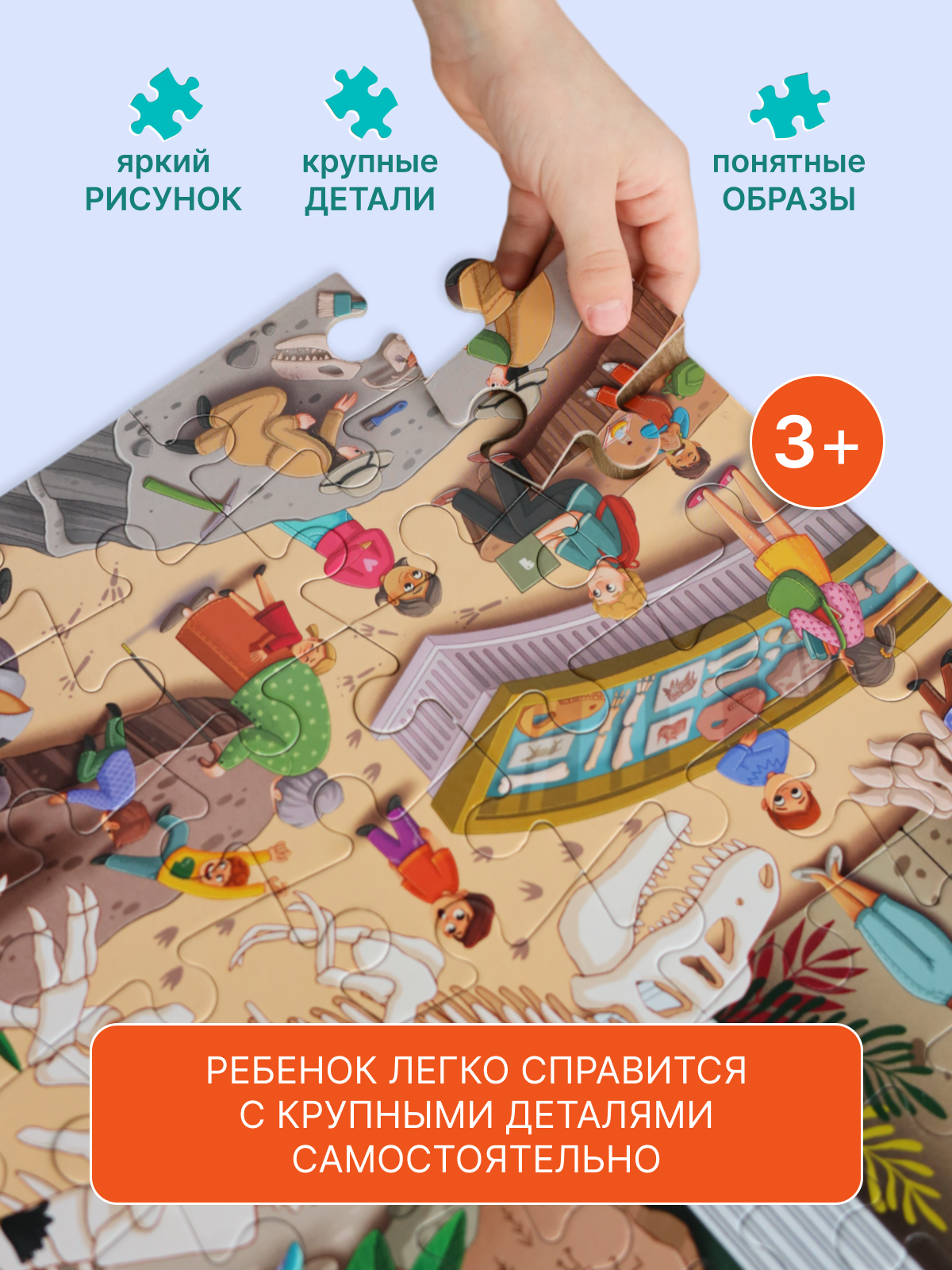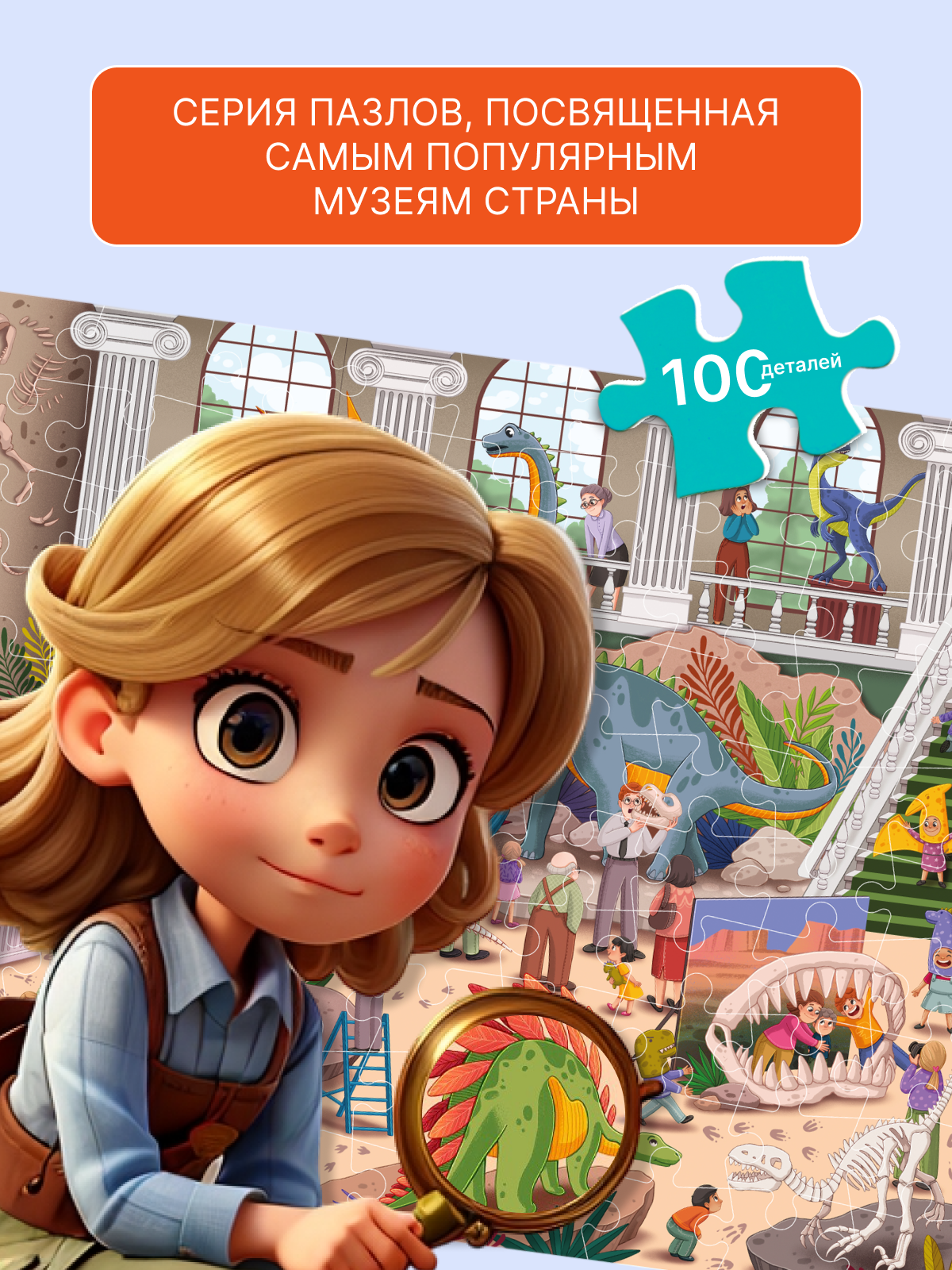 Отзывы на Пазл El`BascoKids "Ночь в музее. Палеонтологический музей" 100 элементов 64х46 см , ET01-028