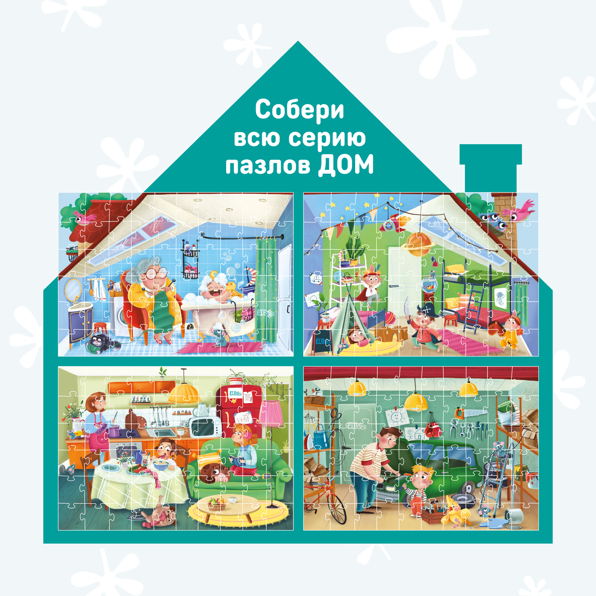 Набор пазлов 4 штуки El`BascoKids 60 элементов 32х23 см "Дом" , ET01-128
