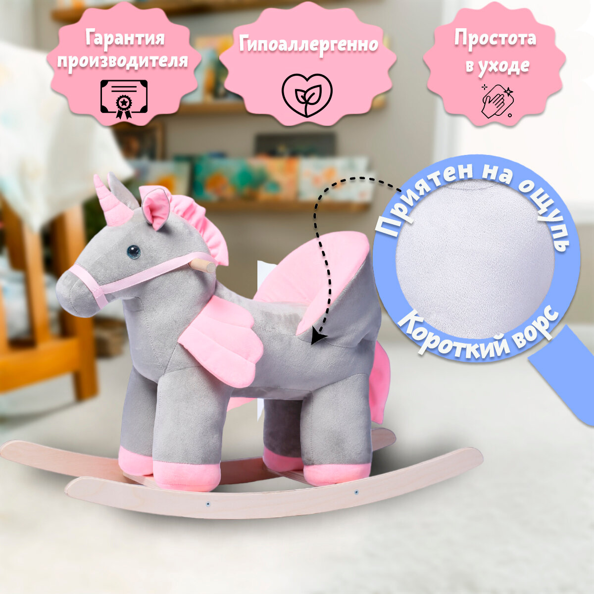Каталка-качалка Amarobaby Единорог AMAROBABY (Juno) с колесами розовый/серый, 64х35х60 см