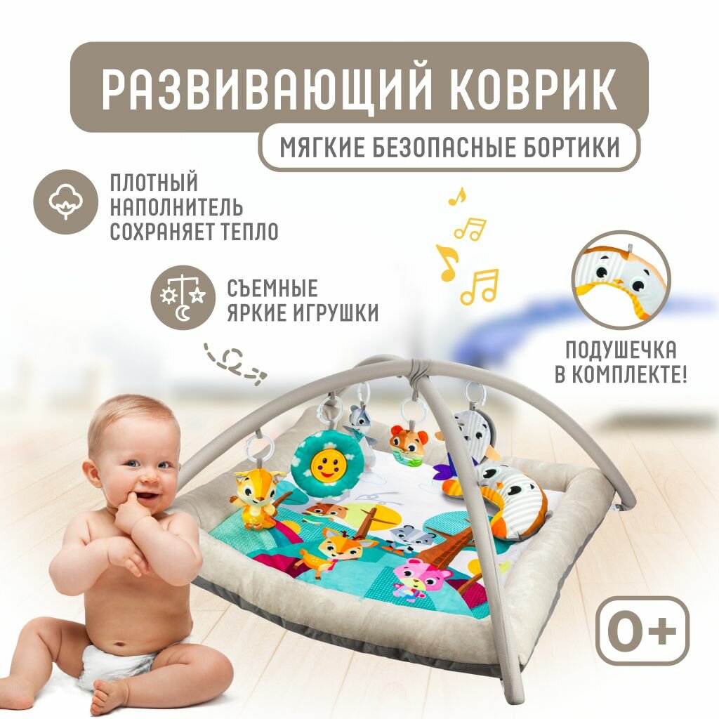 Отзывы на Детский развивающий коврик для новорожденного с дугой, игрушками и бортиком, голубой