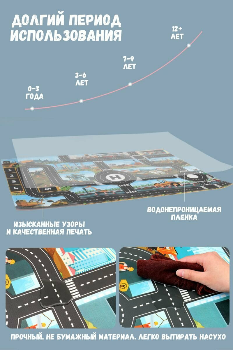 Развивающий коврик "Дорожная карта" с парковкой "Стройка" информация: