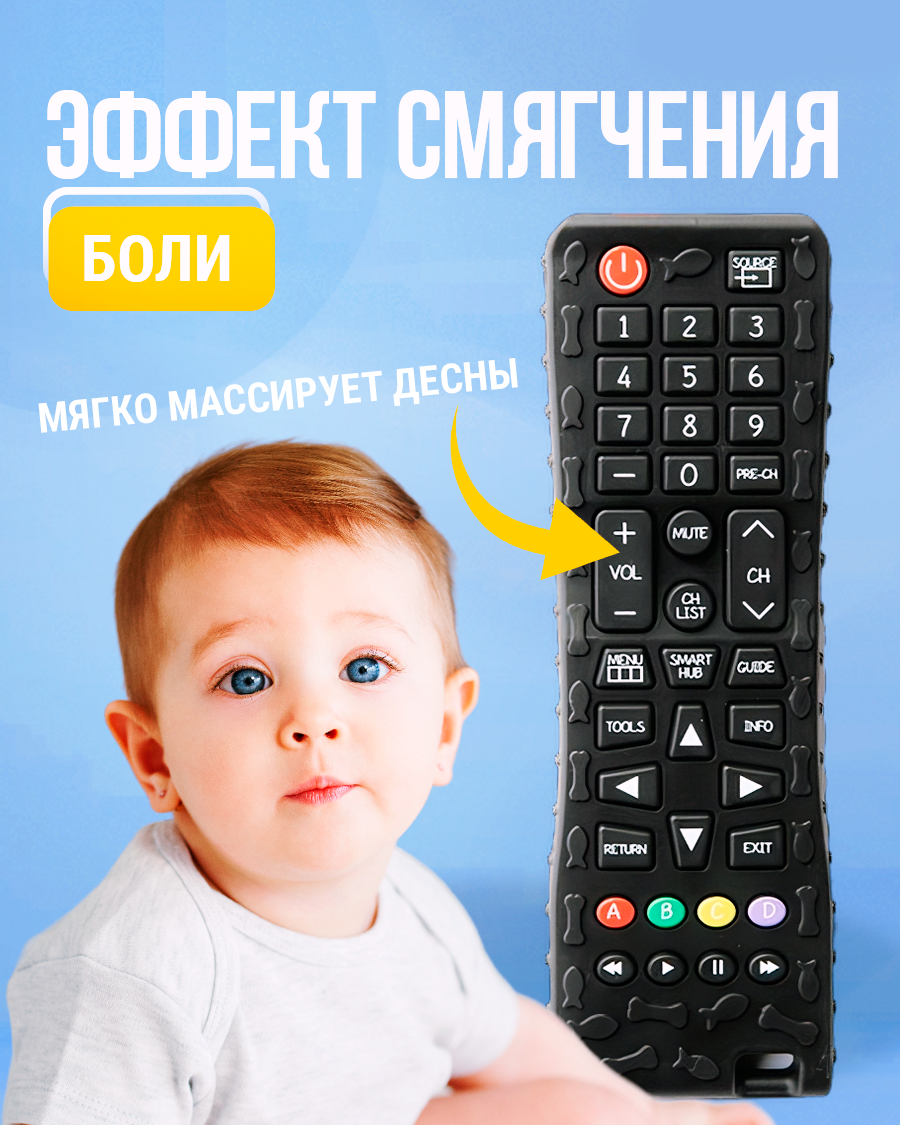 Отзывы на Прорезыватель силиконовый, грызунок для детей "Пульт ТВ", черный