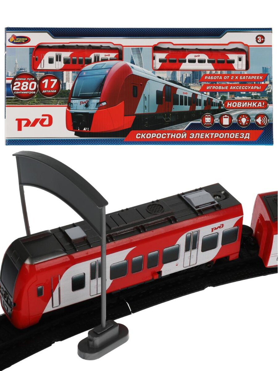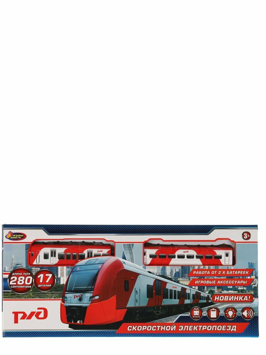 Железная дорога Скоростной поезд Ржд со светом и звуком 17 деталей длина пути 280 см играем вместе YG96612-R информация: