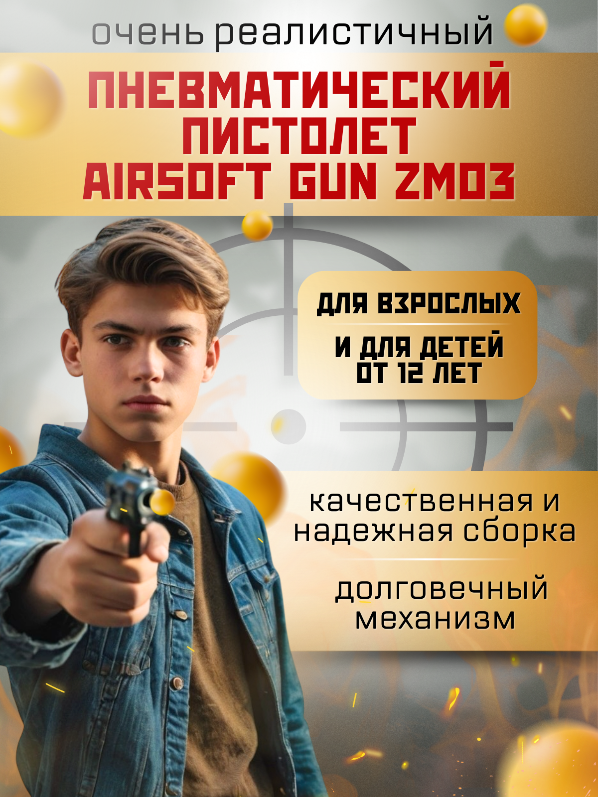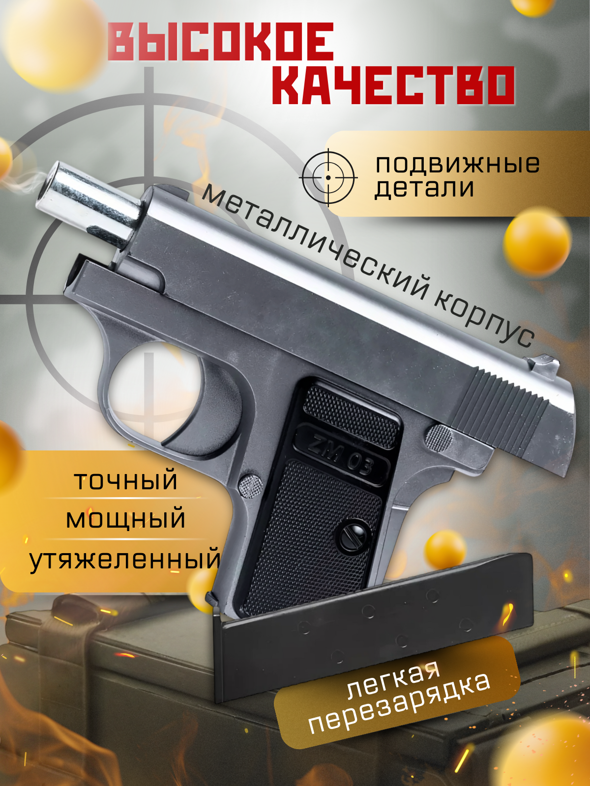 Детский пневматический пистолет Airsoft Gun ZM03 информация: