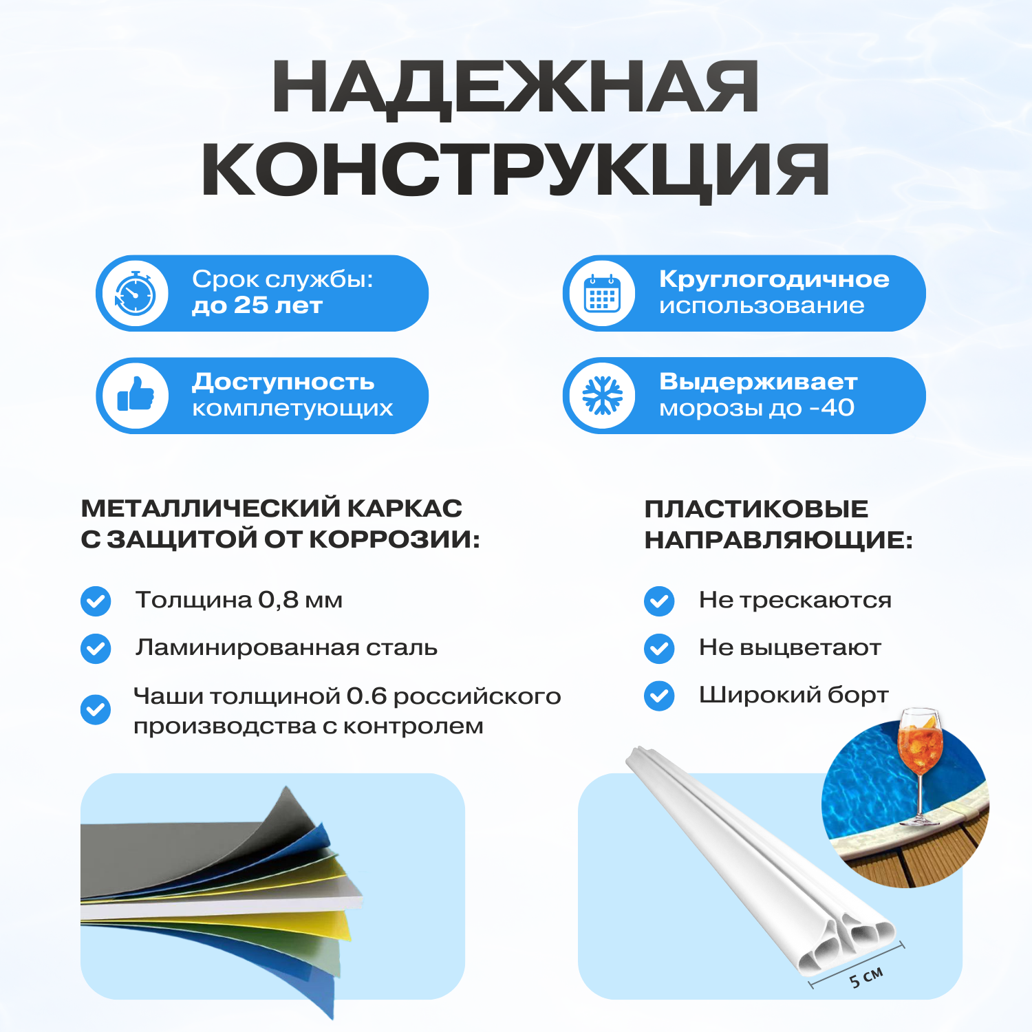 0 отзывов, средняя оценка 0. Чтобы купить «Бассейн 5 х 3 х 1,5 м гигабасс овальный каркасный морозоустойчивый вкапываемый, Платина чаша 0,6 мм» по лучшей цене мы сканируем авито, алиэкспресс, маркет, озон, савеловский, плеер, горбушку, беру, официальные сайты и находим минимальную. Администрация не несет ответсвенность актуальность цен на Бассейн 5 х 3 х 1,5 м гигабасс овальный каркасный морозоустойчивый вкапываемый, Платина чаша 0,6 мм, более подробно узнавайте на сайте магазина.