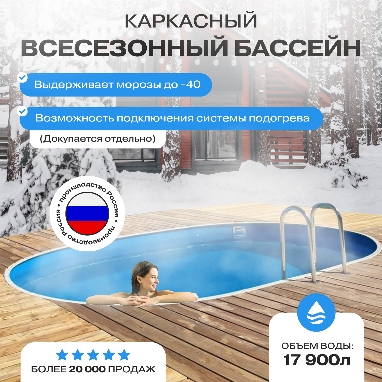 Бассейн 6 х 3 х 1,5 м гигабасс овальный каркасный морозоустойчивый вкапываемый, Платина чаша 0,6 мм 182 000 ₽
