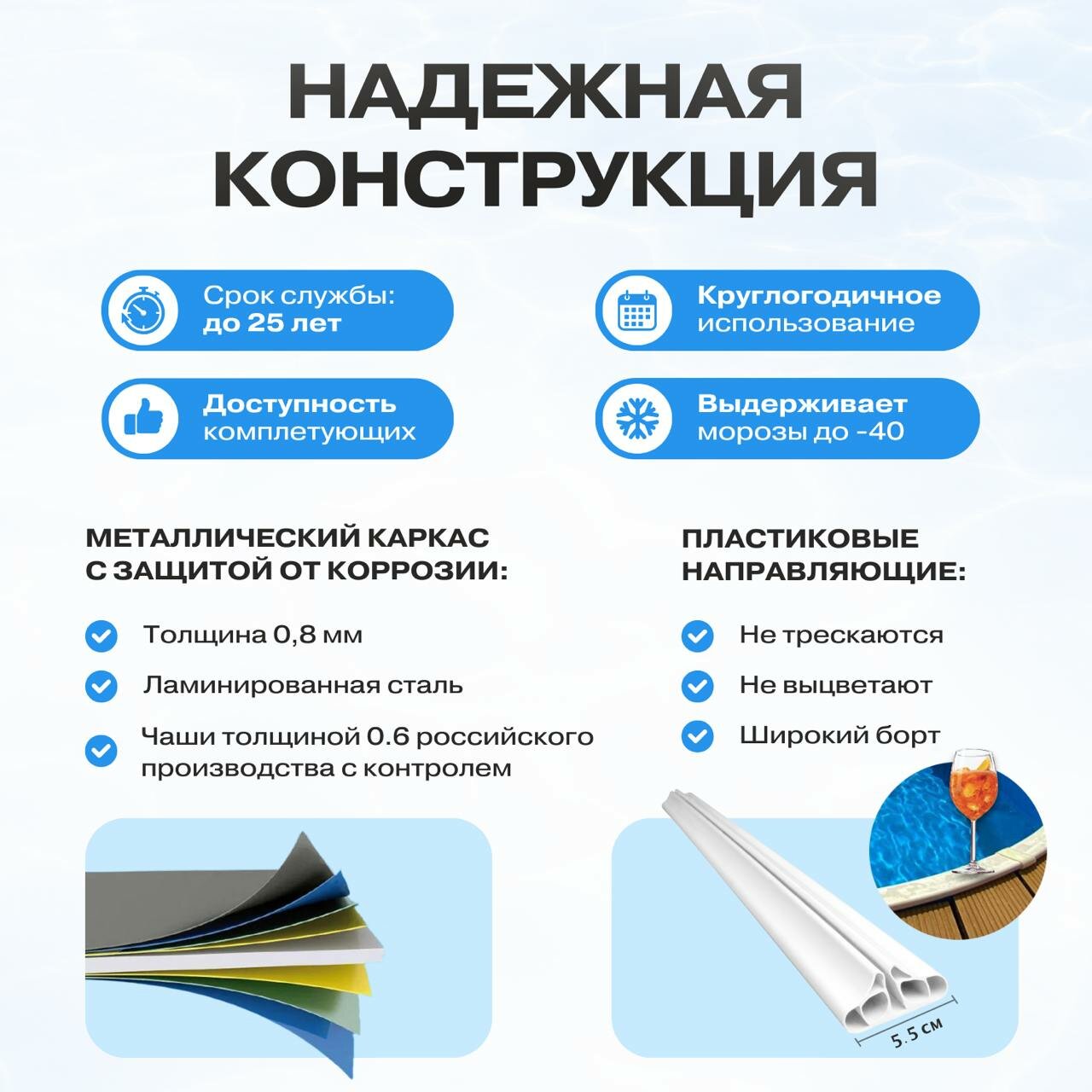 Бассейн 6 х 3 х 1,5 м гигабасс овальный каркасный морозоустойчивый вкапываемый, Платина чаша 0,6 мм 182 000 ₽