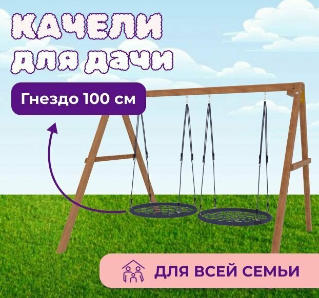 10 цен на Детские деревянные качели для дачи - окрашенные. Качель детская уличная для ребенка с двумя гнездами 100 см