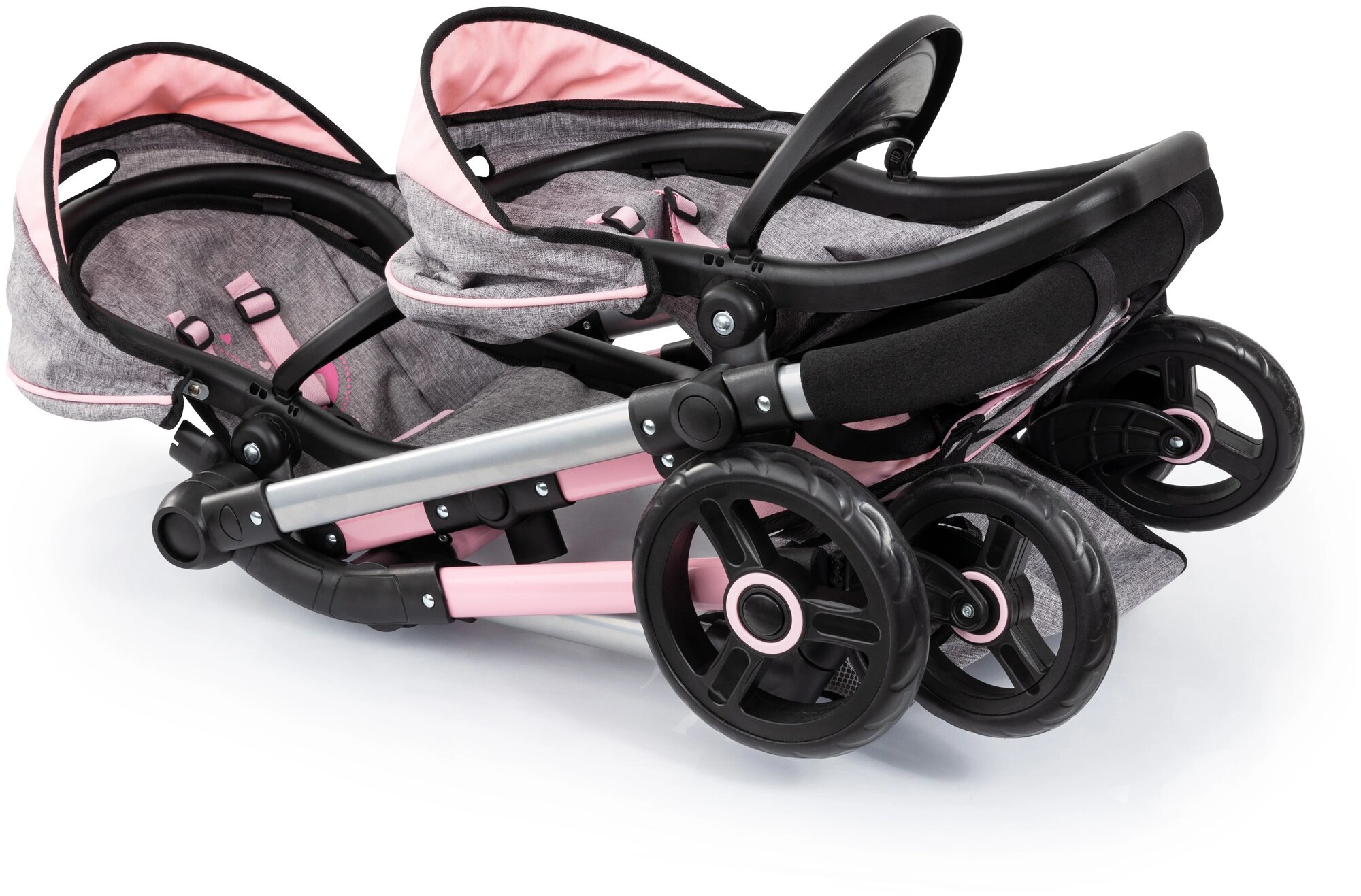 Детская коляска для кукол Bayer Design - Twin Xeo для Двойни серо-розовая с сумкой, регулируется по высоте - 26733AA