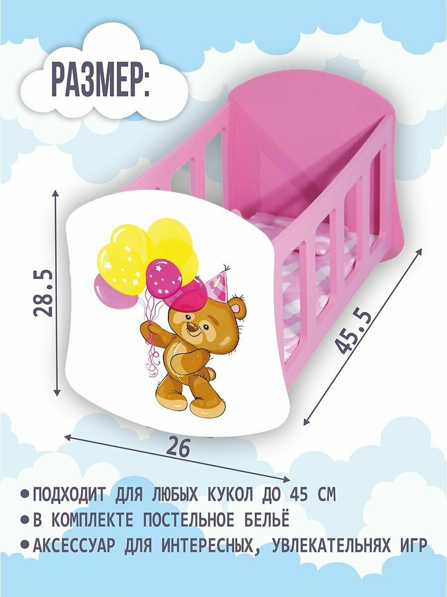 Люлька для кукол до 45 см с рисунком мишки информация: