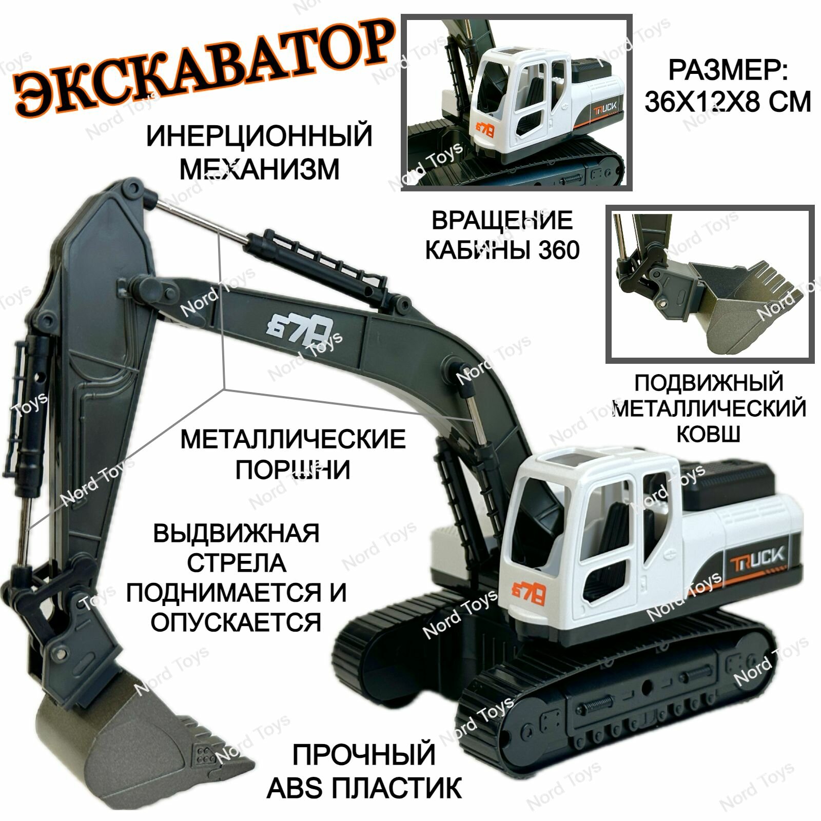 10 цен на Инерционный экскаватор, вращение кабины 360, подвижная стрела и ковш, металлические элементы, 36х12х8 см
