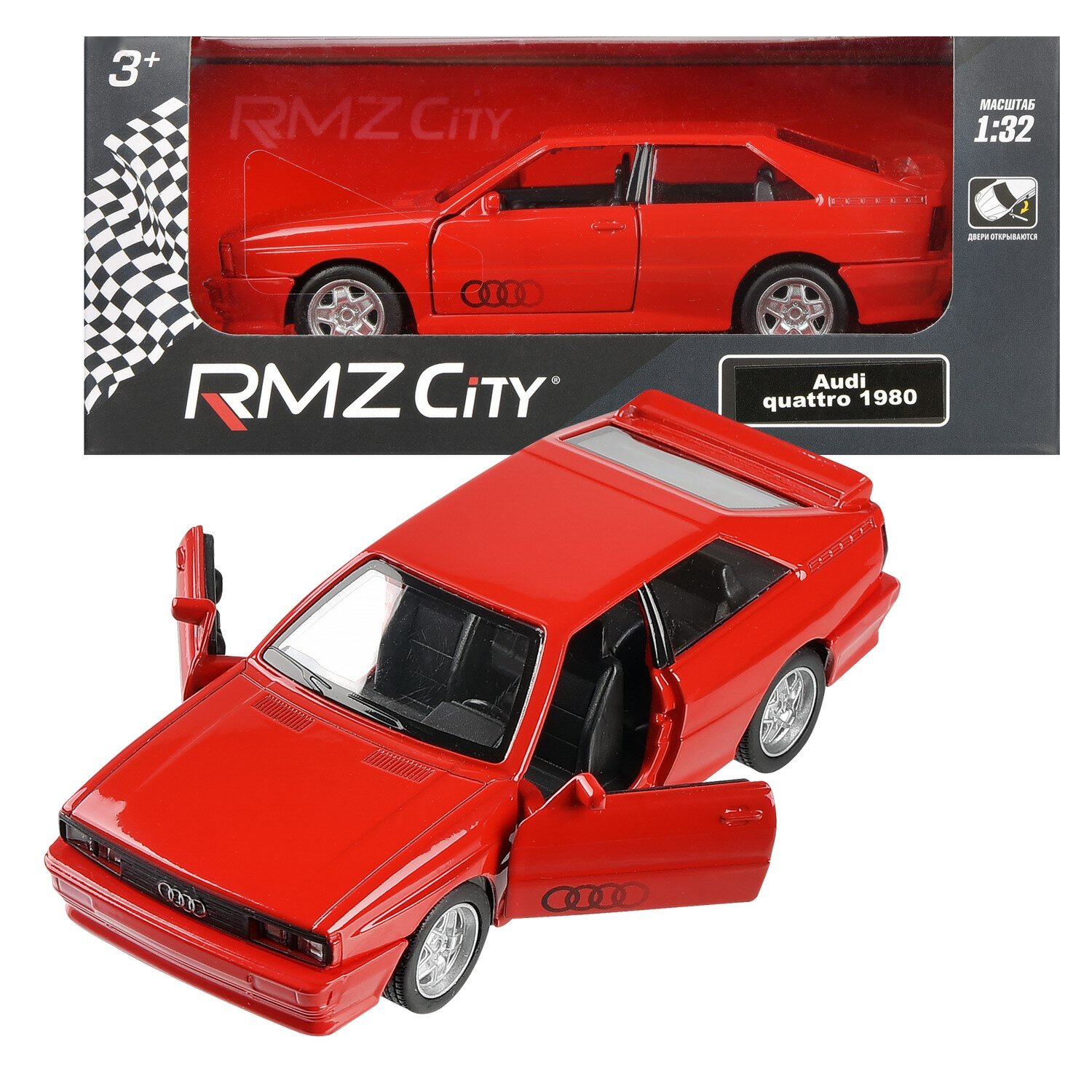 Отзывы на Машина металлическая RMZ City серия 1:32 Audi Quattro Coupe (1980-1991), красный цвет, инерционный механизм, двери открываются
